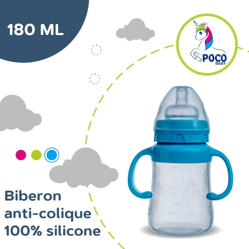 POCO BABY Biberon silicone Bleu 180ML 0-6 mois