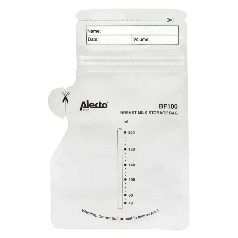 Les sacs de conservation de lait maternel Alecto BF100 sont également totalement hermétiques grâce à la double fermeture à glissière. Ils disposent aussi d’un bec verseur pratique, vous pouvez ainsi facilement les utiliser lorsque vous êtes sur la route.