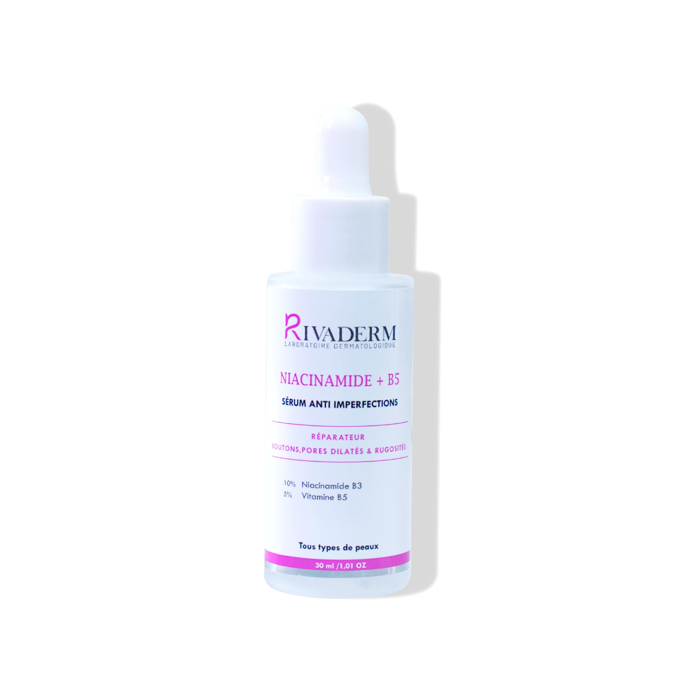 Sérum anti-Imperfection régénérant, qui allie le pouvoir anti-imperfection de la Niacinamide à la fonction réparatrice et assure une protection barrière par le Panthenol. Convient pour tous les types de peaux, ce sérum réduit les signes de vieillessement cutané. Hydrate, unifie le teint, resserre les pores, régule le sébum et énergise les cellules de la peau. Il aide à favoriser le renouvellement cellulaire de surface et prévient l'apparence des rides et des ridules.