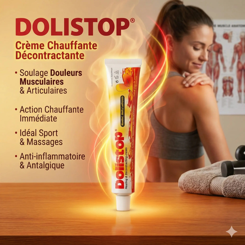 La DOLISTOP Crème Chauffante Décontractante est un soin topique spécialement formulé pour soulager les douleurs et raideurs musculaires, articulaires et tendinoligamentaires.