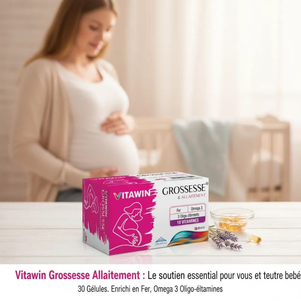 Vitawin Grossesse Allaitement est un complexe multivitaminé spécialement conçu pour les femmes enceintes ou allaitantes. Il répond en toute sécurité à leurs besoins spécifiques en vitamines, minéraux et oligoéléments, contribuant ainsi au développement harmonieux du fœtus.