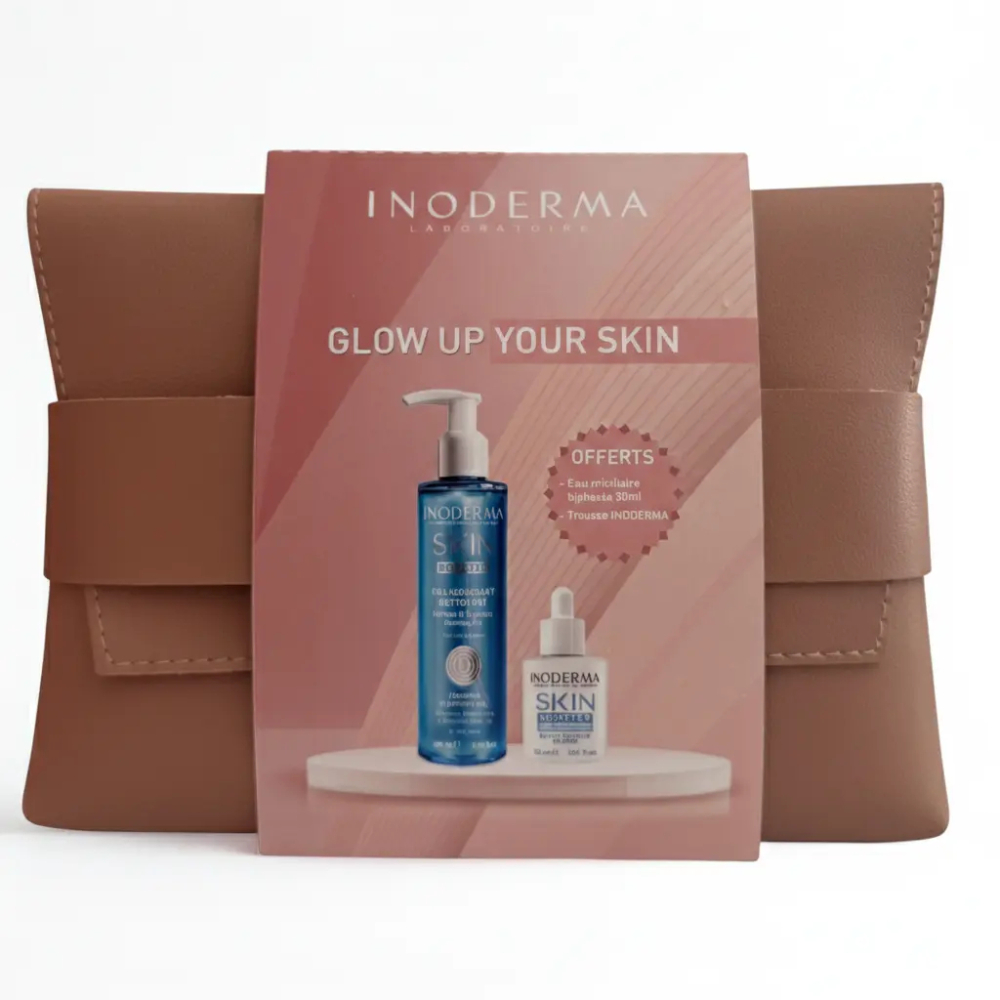 INODERMA TROUSSE GLOW UP YOUR SKIN GEL NETTOYANT + SERUM BOOSTER + EAU MICELLAIRE BIPHASÉ 30ML OFFERTE ET TROUSSE OFFERTE