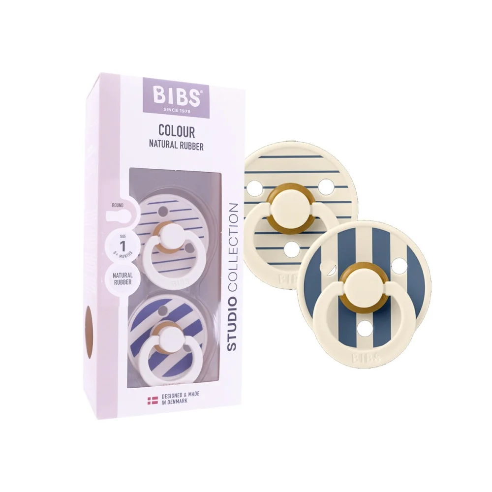 Des motifs à la mode et des sucettes de qualité s'unissent dans la collection BIBS Studio. La tétine ronde favorise un placement de la langue et une technique de succion similaires à ceux de l'allaitement. La forme ronde permet aux côtés de la langue de se déplacer et de se placer autour du sein rze, comme lors de l'allaitement.